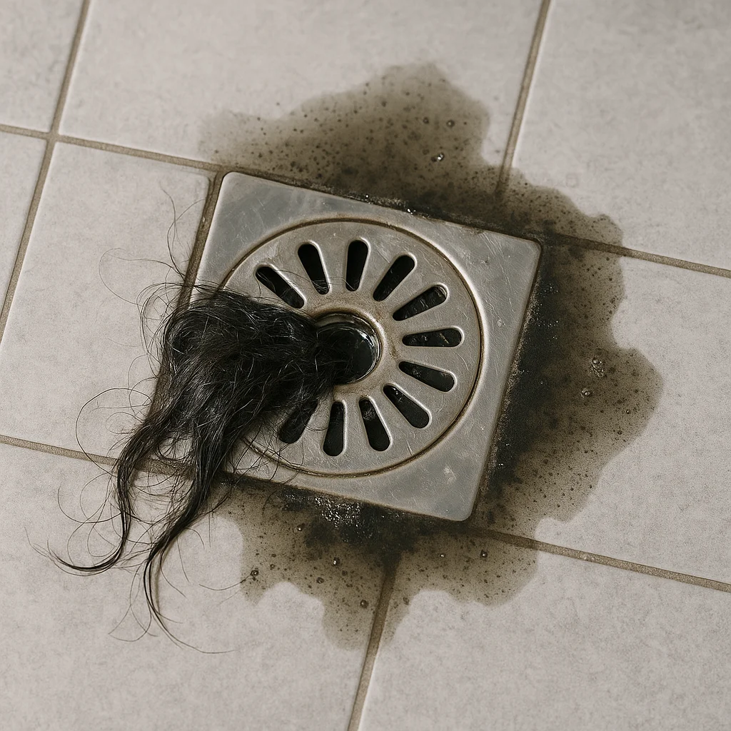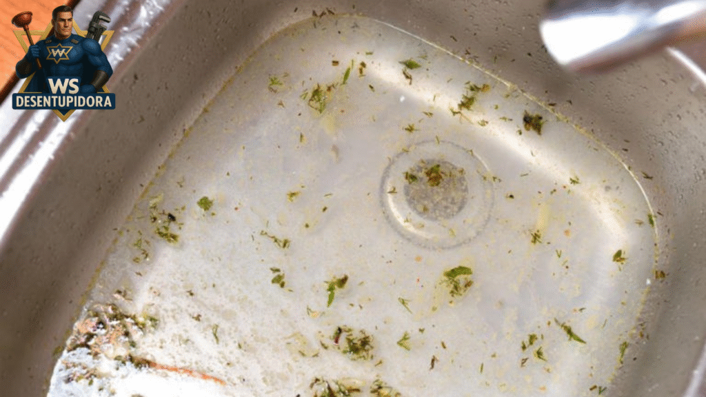Acúmulo de resíduos no ralo — restos de alimentos, gordura, cabelo e sabão se acumulam progressivamente nas paredes internas do ralo e da tubulação. Com o tempo, esse acúmulo reduz o diâmetro interno do cano até bloquear completamente a passagem da água.